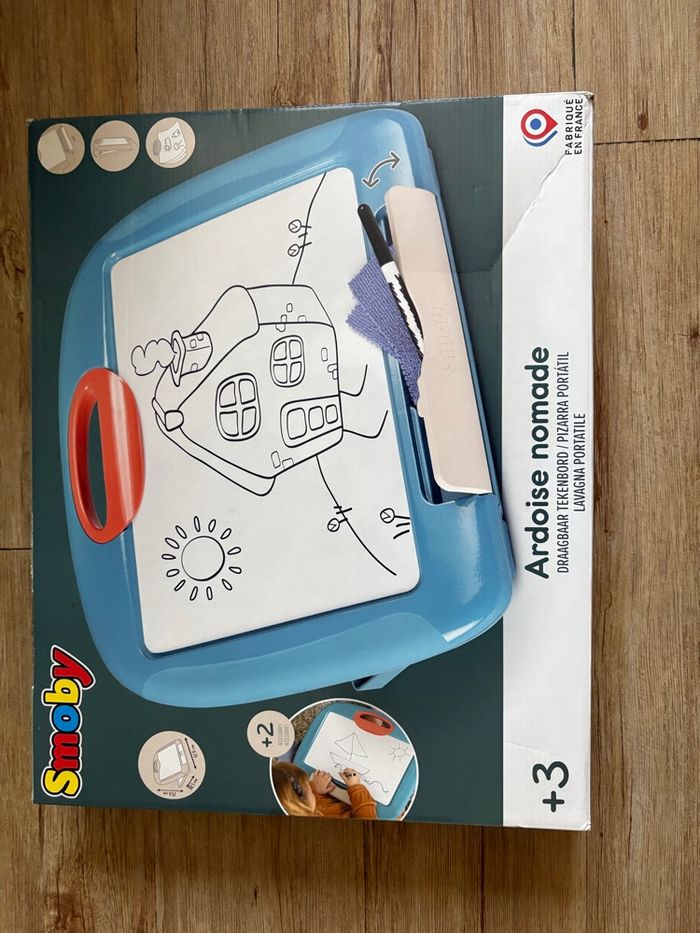 Ardoise plastique modulable : une face blanche pour écrire au feutre effaçable. Le matériau utilisé, la rend légère et résistante aux chocs. Astucieuse, elle comporte un rangement pour ces accessoires et un autre pour ces dessins.