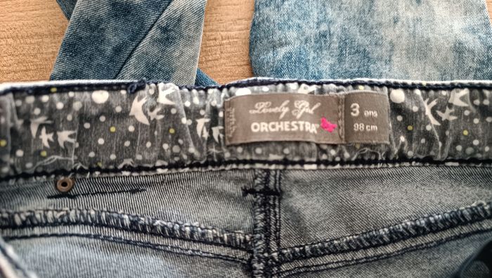 Jeans style délavé, taille 3 ans, de marque Orchestra, très bon état. Possibilité de faire des lots