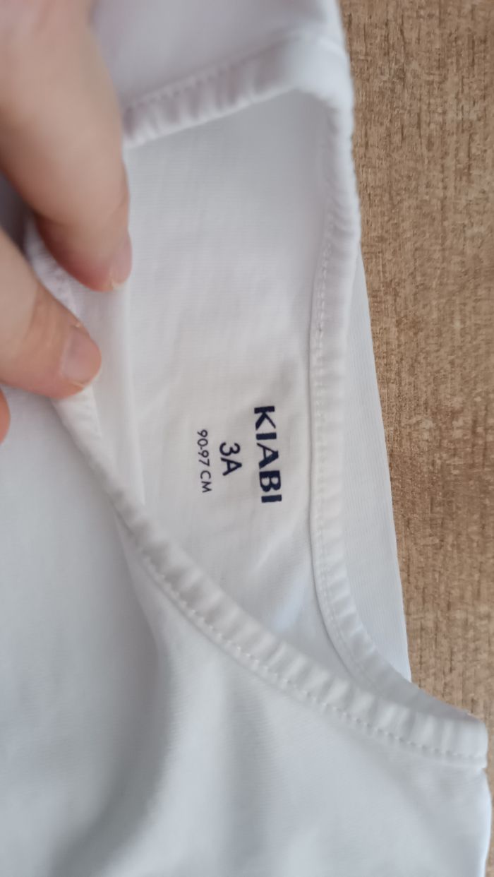 Tee-shirt manches longues blanc, taille 3 ans, de marque Kiabi, très bon état. Possibilité de faire des lots