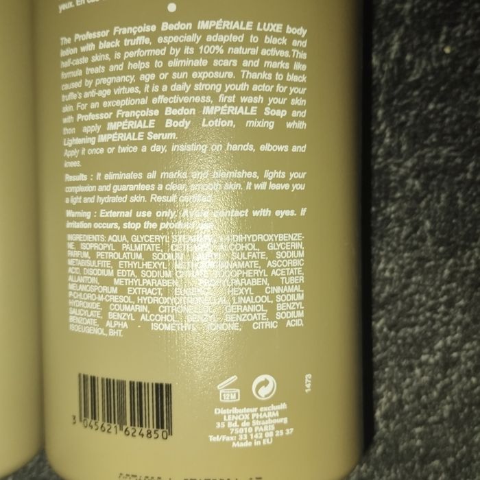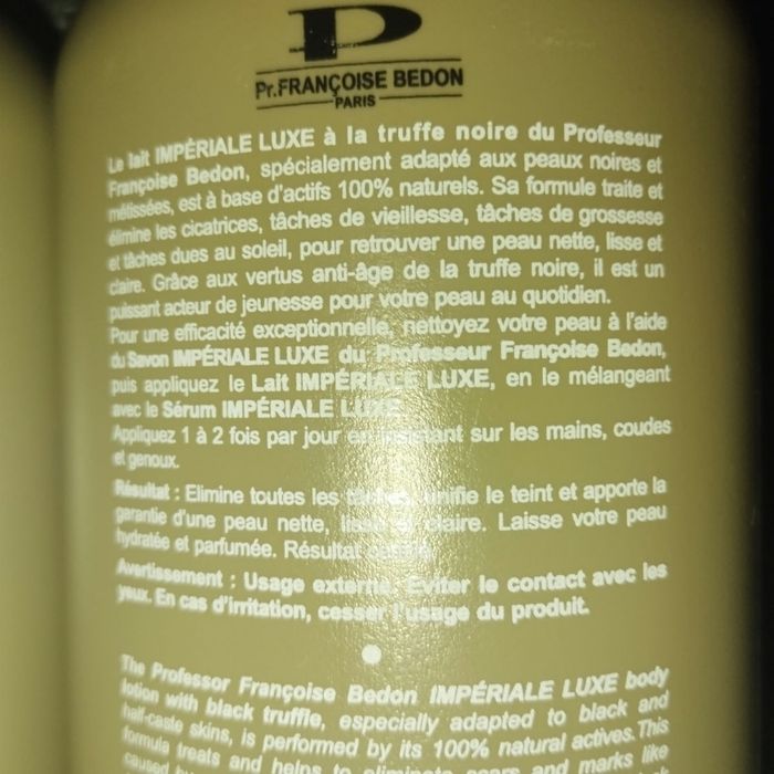 Lot de 2 lait éclaircissant impériale luxe anti âge a la truffe noire.du professeur francoise bedon.