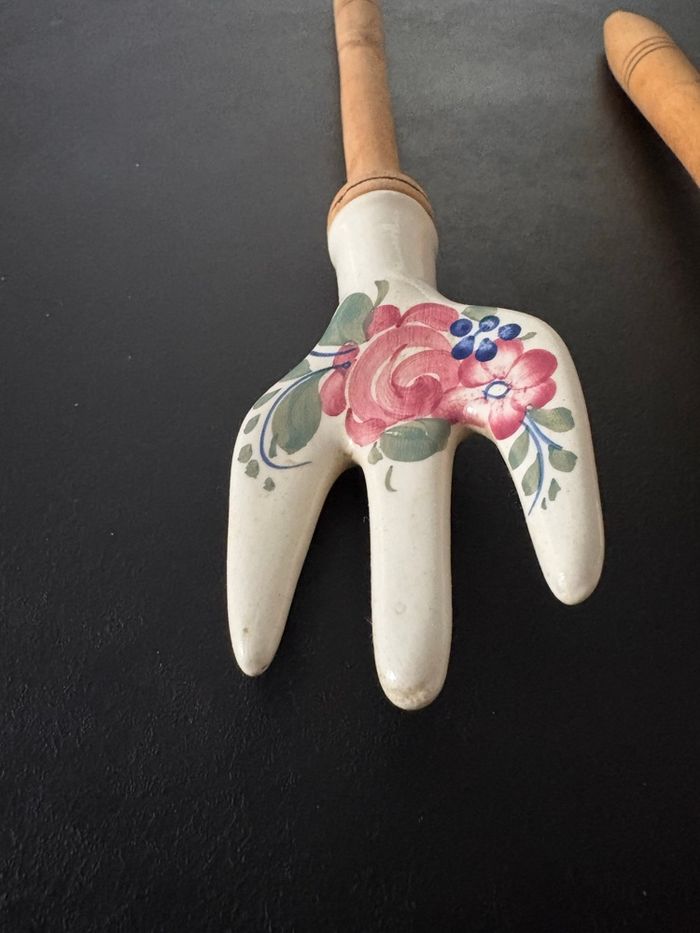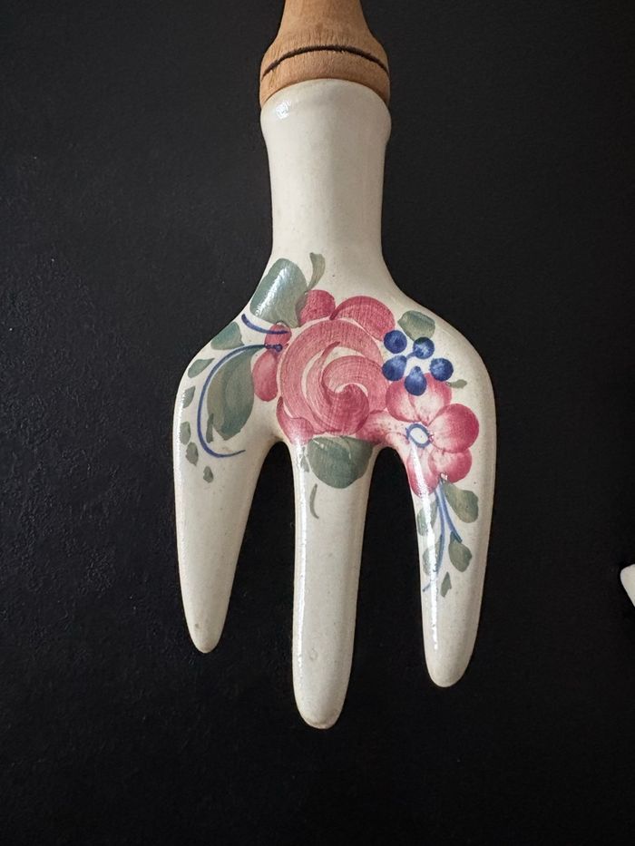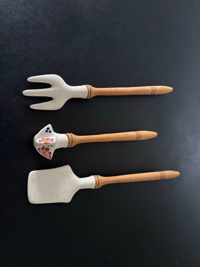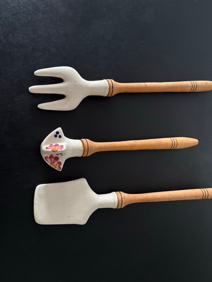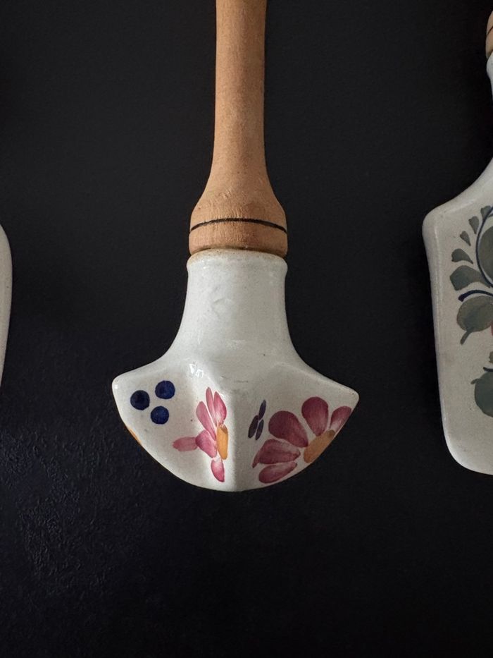 Lot de 3 couverts manche en bois et porcelaine fleurie Ensemble d'ustensiles vintage en porcelaine wtoctawek poland et en bois. - photo numéro 10