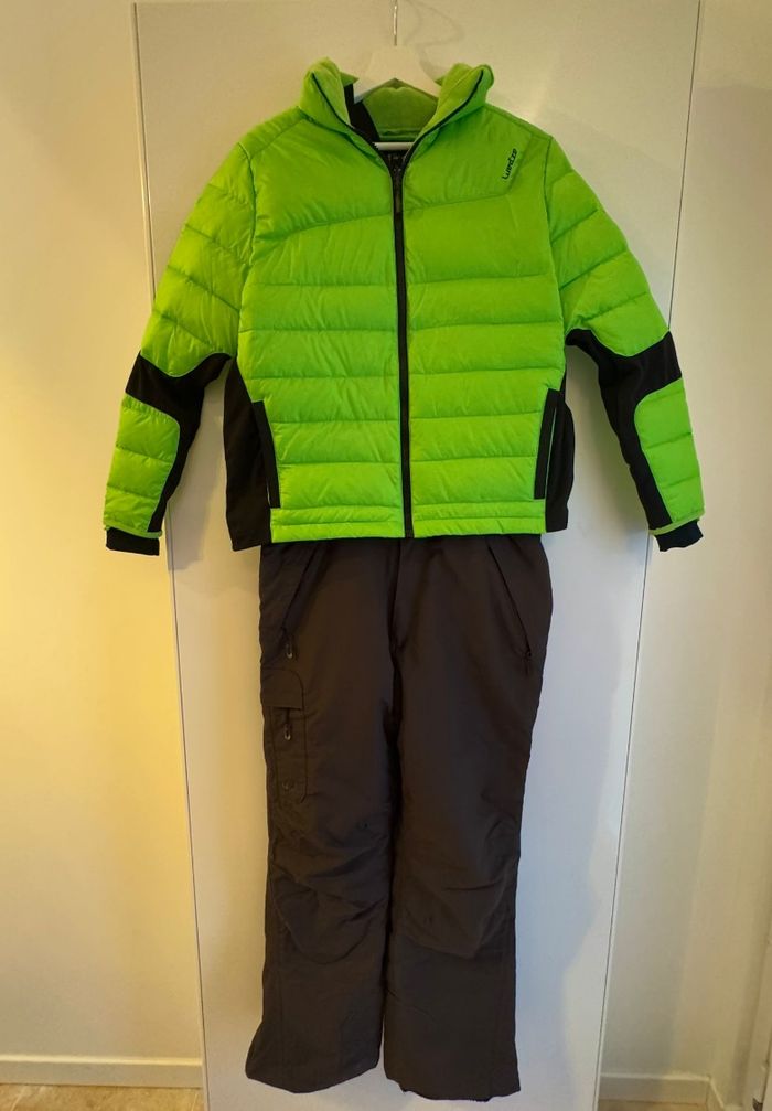 Ensemble de ski femme, idéal pour sports d’hiver, composé de : Veste de ski – Wed’ze (Decathlon) NEUVE • Taille : plus d’étiquette mais correspond à une taille 40/42 • Couleur : vert pomme acidulé / noir • État : NEUVE – jamais portée • Veste matelassée, légère et chaude • Intérieur doux (type polaire au col) • Poches intérieures • Parfaite pour ski, snowboard ou simplement pour l’hiver comme blouson de tous les jours. ⸻ Pantalon de ski – Go Sport • Taille : L • Couleur : marron • Bretelles réglables • Poches zippées • Bien chaud, confortable • Bel état général, porté une saison • ⚠️ À signaler : légers accrocs sur le bas du pantalon à cause des chaussures de ski mais reste discret de loin, n’affecte pas l’usage).