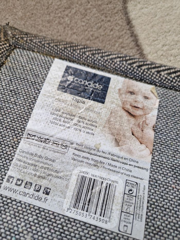 Tapis chambre bébé candide 90x90cm. Présente quelques petites tâches que je n'ai pas essayé d'enlever sinon très bon état