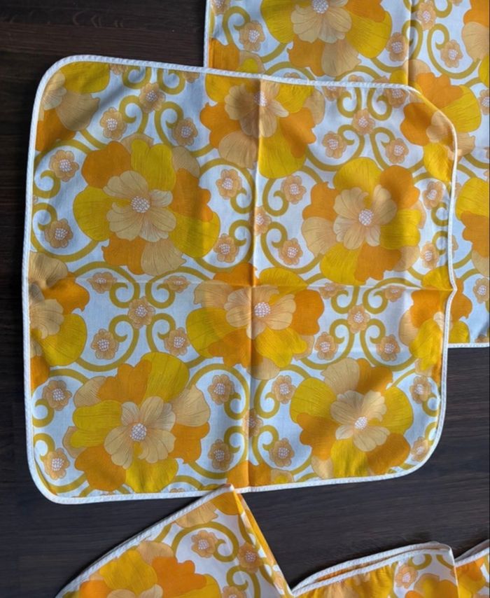 Lot de 6 serviettes de table grosses fleurs vintage orange - année 70 - très bon état - photo numéro 5