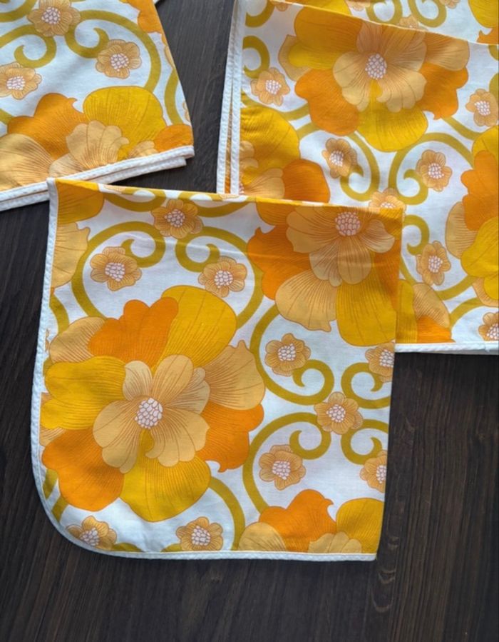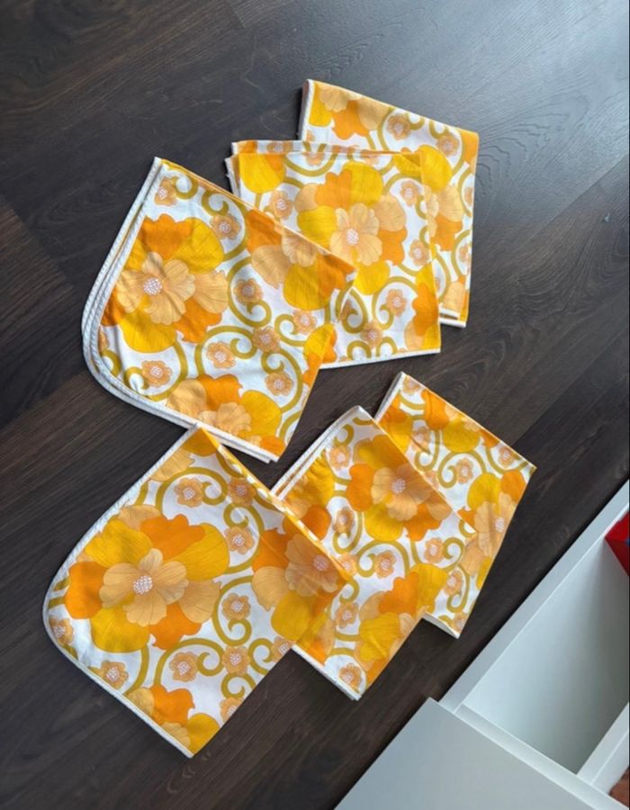 Lot de 6 serviettes de table grosses fleurs vintage orange - année 70 - très bon état
