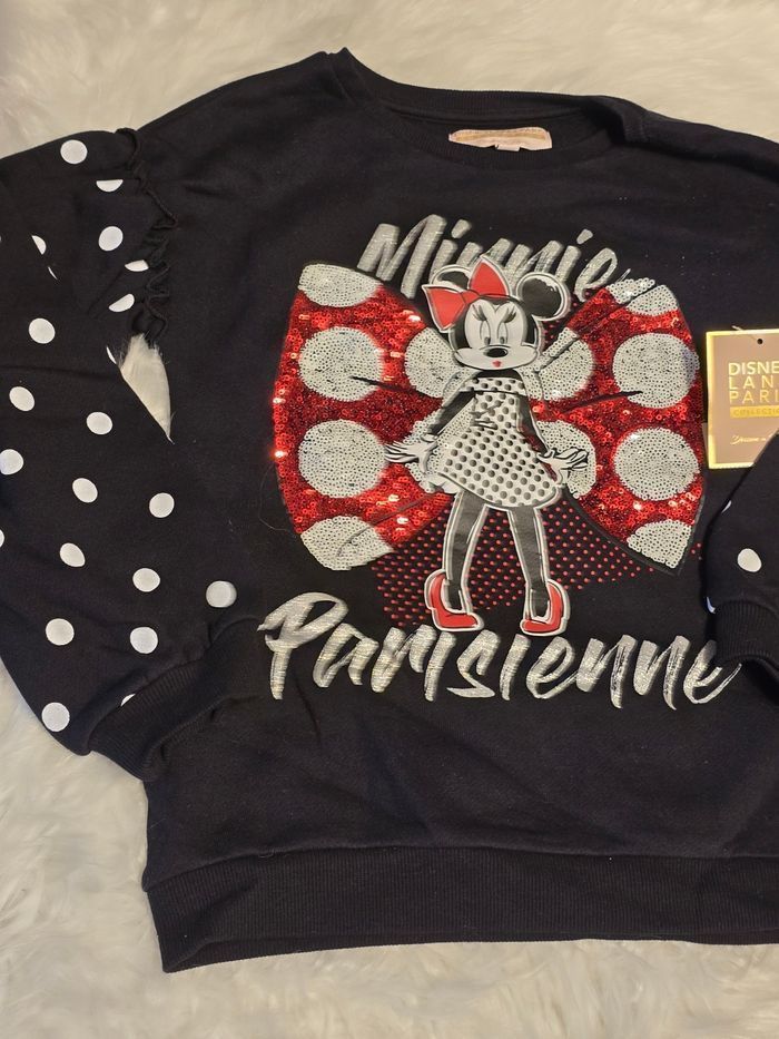 ➡️ prix ferme !!! ➡️ pas d offres !!! ➡️ pas de prix de lot !!! NEUF NON PORTÉ !!!!🏷💜💜⚘️🤩😍🌺 SUPERBE SWEAT MOLLETON AVEC SEQUINS 8 ANS FILLE DISNEYLAND PARIS OFFICIEL