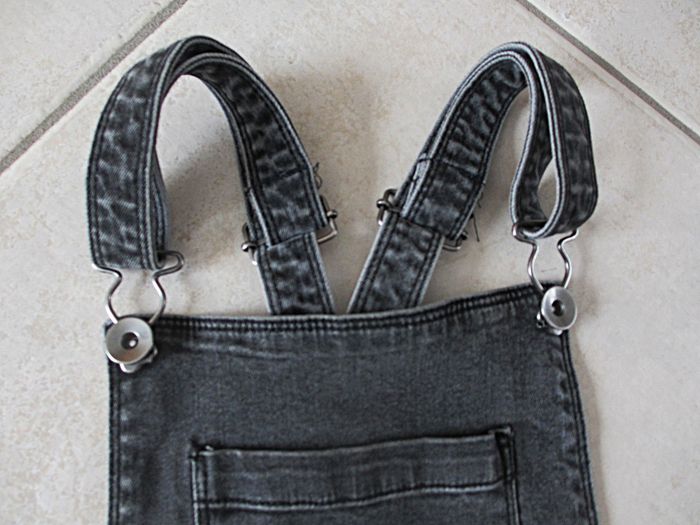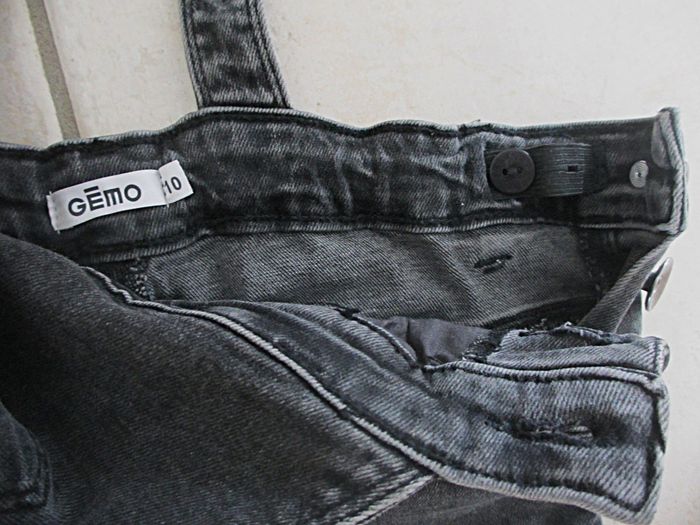 Salopette en jean fille Gémo - 10 ans Taille ajustable. Bretelles réglables. Très bon état.