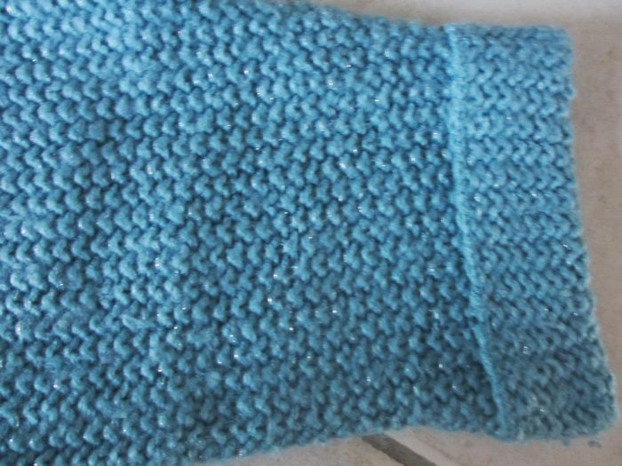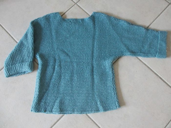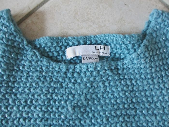 Pull manches 3/4 fille La Halle - 10 ans Bleu canard. Point mousse. Très bon état.