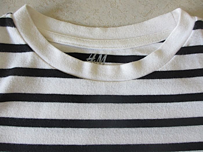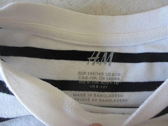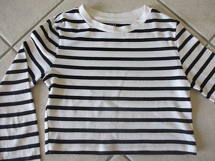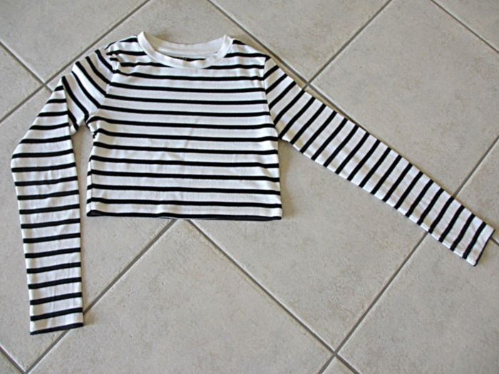 T-shirt court manches longues fille H&M - 10 ans Rayé marine et blanc. Très bon état.