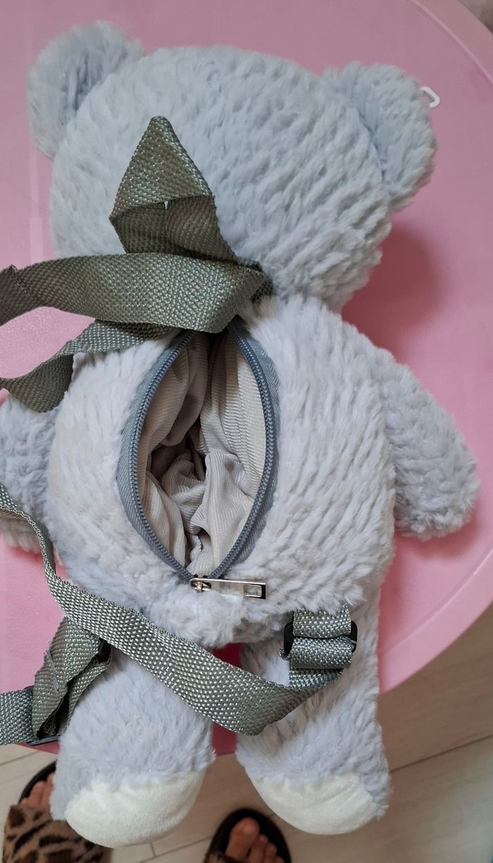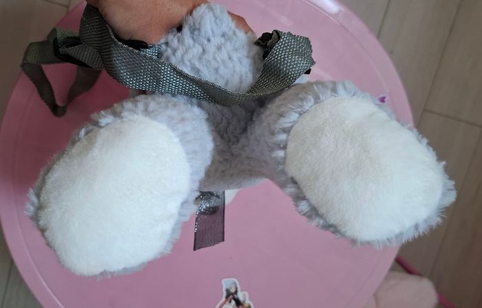 Sac à dos ourson neuf Gris anthracite et blanc - tout doux - bretelles réglables - fermeture par zip La