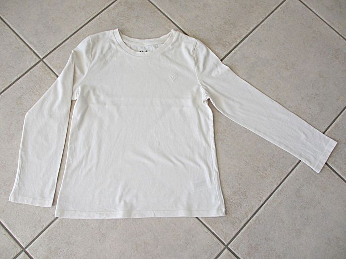 T-shirt écru manches longues fille C&A - 9 ans Ecru. Avec petit cœur brodé devant. Très bon état (très peu porté).