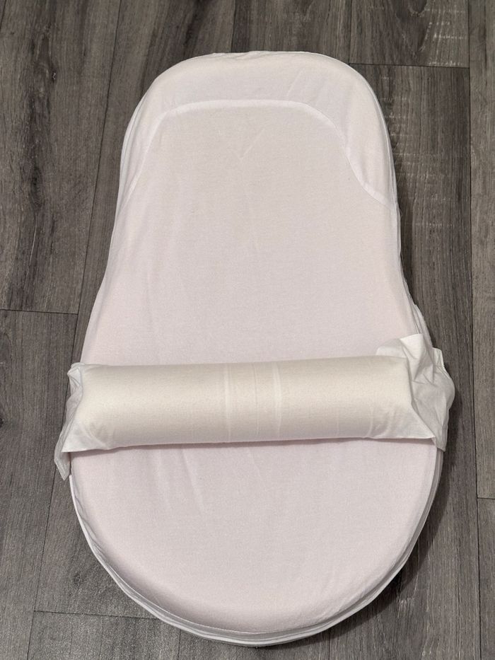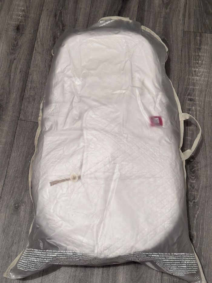 Bon état avec quelques traces d'utilisation comme dans les photos. Vendu avec 2 draps housses, 1 couverture et son sac de transport.