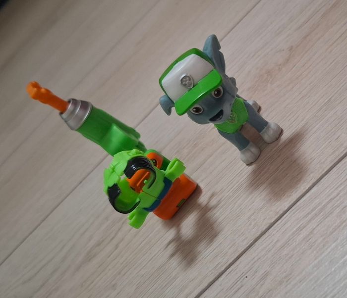 Figurine Rocky et sa catapulte. Figurine 7cm L’accessoire se fixe facilement sur la figurine. La lance part en appuyant sur le bouton. Comme neuf, peu servi Acheté 12.99€