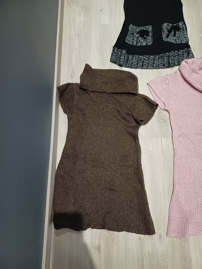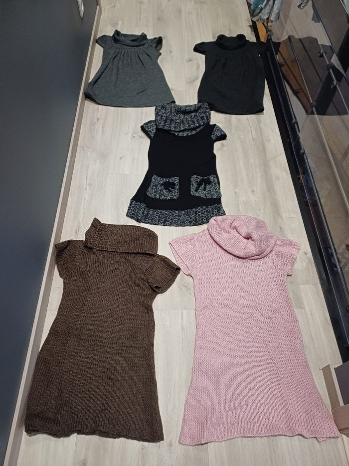 Lot de 5 pulls tuniques 1 tunique noire et grise taille 1 1 tunique mim marron taille 1 1 tunique mim rose taille 2 2 tuniques grises (claire et foncée) taille unique Maison non fumeur, premiere main, pas d'animaux D'autres vetements sur #laul57femme