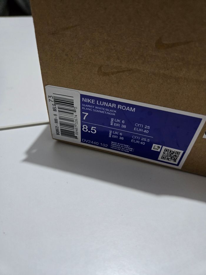 Nike Lunar Roam – Taille 40 Neuves, jamais portées. Coloris : noir avec touches gris et blanc. État impeccable, aucun défaut. Vendues avec la boîte d’origine sans couvercle. Modèle confortable et moderne, idéal pour un usage quotidien.