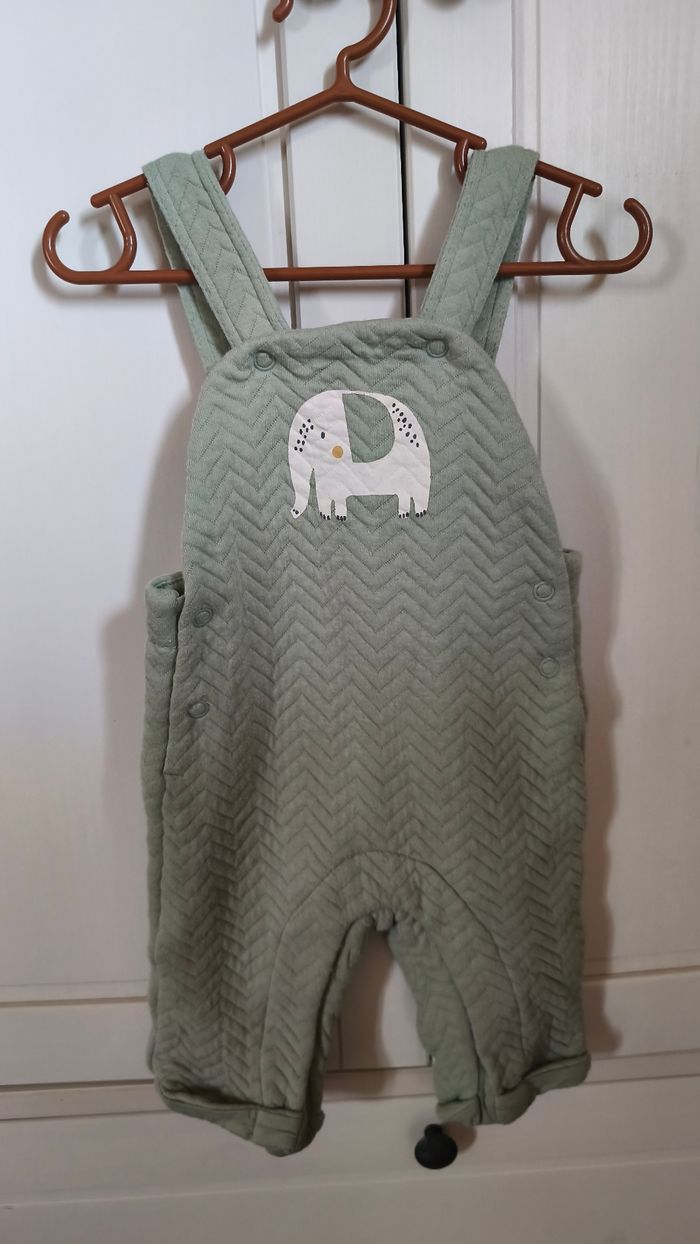 Salopette bébé garçon ou fille Réglable aux bretelles sur 2 hauteurs Ouverture pression à l'entrejambe Couleur vert menthe Motif éléphant #savane Gémo, 3 mois