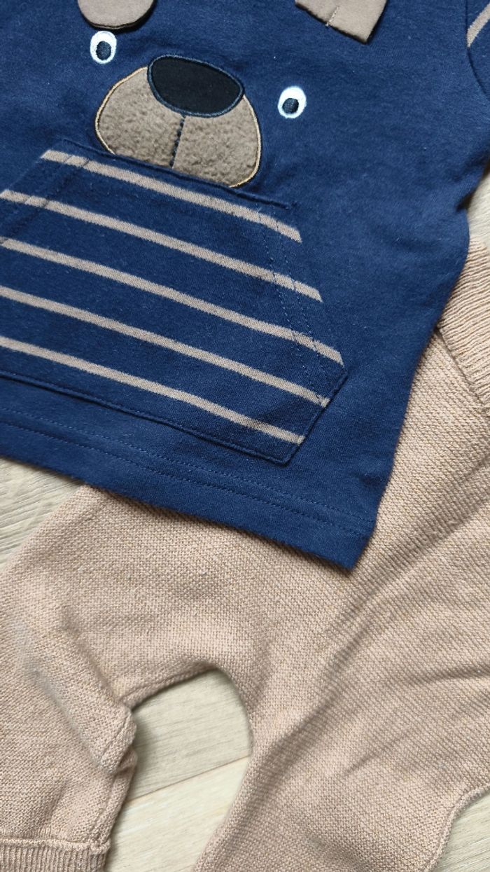 - maillot à longues manches, chien ou ours (selon les avis 🫢) bleu marine, à rayures marron 3M - legging marron en maille, Kiabi 3 mois 56-62 cm