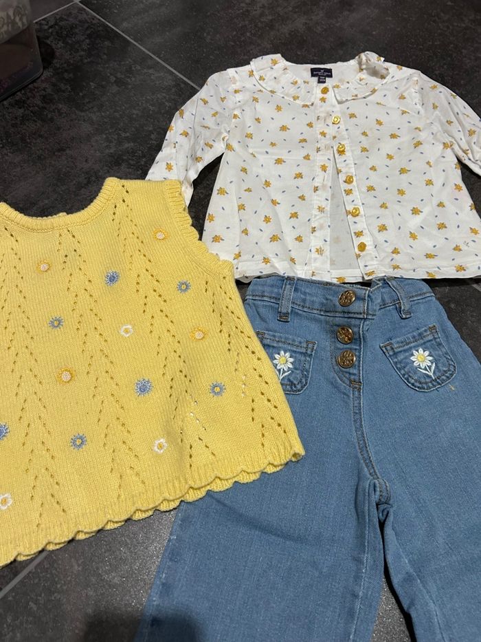 Ensemble sergent major jean 2ans en parfait état + gilet 3ans et chemise 4ans ( léger reste d’une taches peu visible) voir photo
