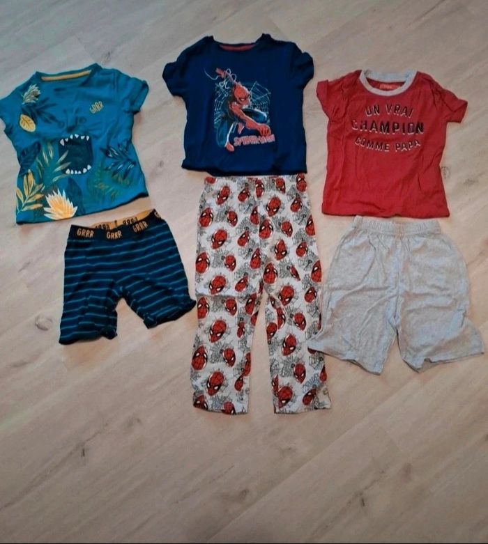 1 pyjama short pyjashort du pareil au même animaux 2ans 2 pièces neuf passé 1x en machine 1 pyjama short pyjashort tissaia "champion comme papa" 2ans 2 pièces neuf passé 1x en machine 1 pyjama t-shirt/pantalon spiderman bleu primark taille 2/3ans neuf passé 1x en machine 2 pièces Maison non fumeur, premiere main, pas d'animaux D'autres vetements sur #laul57babyboy24mois