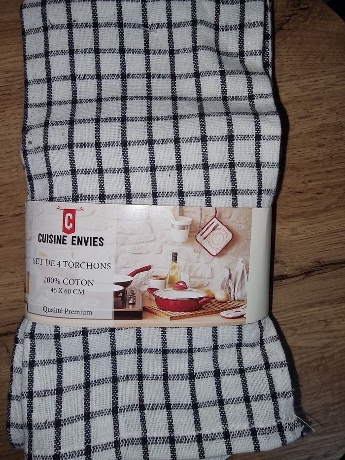 Lot de 4 torchons de cuisine neufs, 100% coton - photo numéro 1
