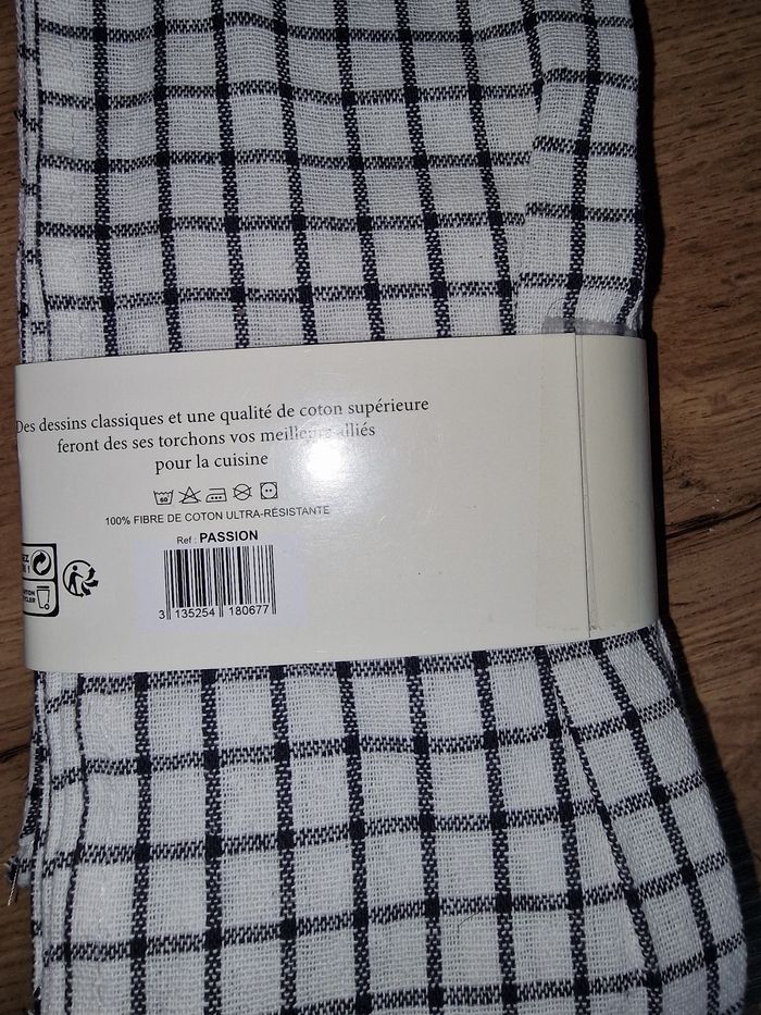 Lot de 4 torchons de cuisine neufs, jamais utilisés. Marque : Cuisine Envies Matière : 100 % coton Dimensions : 45 x 60 cm Qualité : premium – coton ultra-résistant Motif : carreaux noir & blanc (classique et intemporel) Entretien : lavage en machine (voir pictogrammes) Idéal pour la cuisine du quotidien : absorbants, solides et élégants 🧼 Convient aussi très bien pour un cadeau utile 🎁 Envoi rapide et soigné 📦
