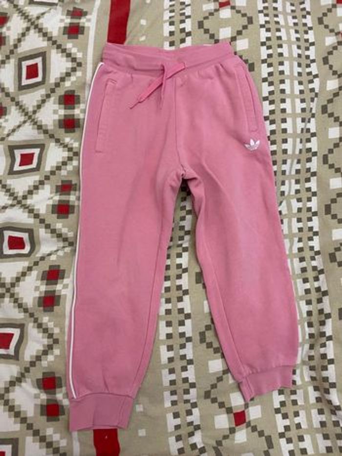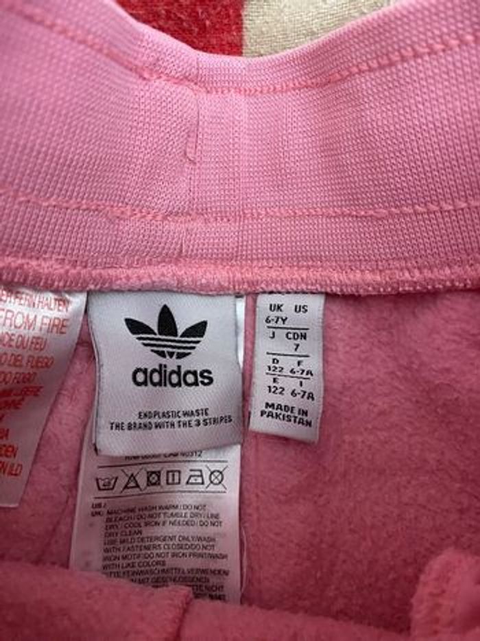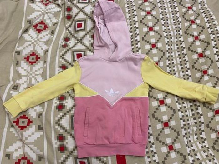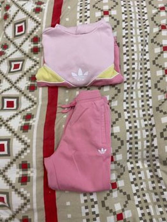 Ensemble de sport Sweat a capuche et pantalon de survêtement Couleur rose et jaune Marque Adidas Taille 6/7 ans Très bon état