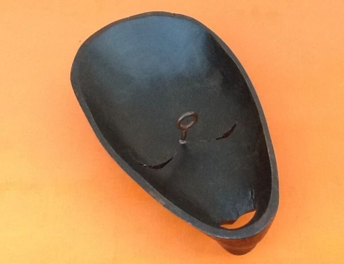 Masque à suspendre Africain / Tribal Bois sculpté incrusté de nacre Longueur : 255mm Largeur : 145mm Hauteur : 55mm Poids : 295grs