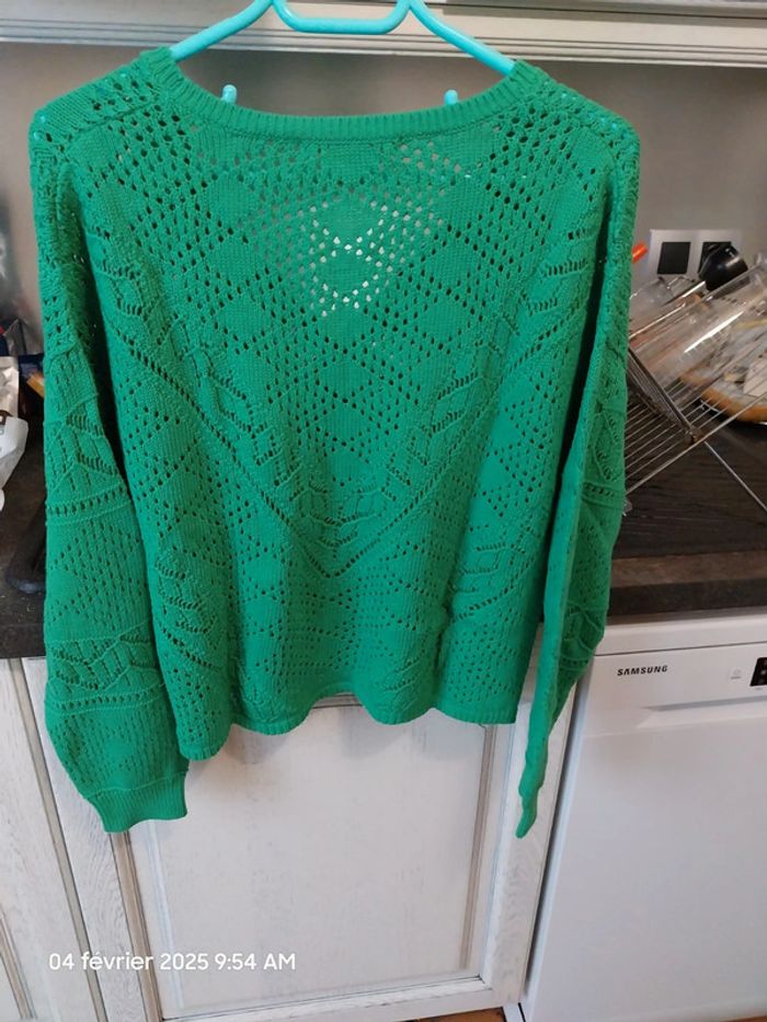 Gilet col V, maille ajourée couleur vert - taille 46/48 - Blancheporte