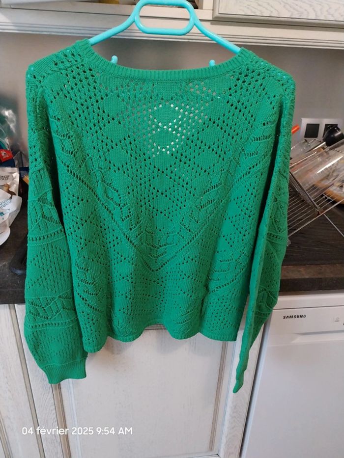 Gilet col V, maille ajourée couleur vert - taille 46/48 - Blancheporte - photo numéro 6