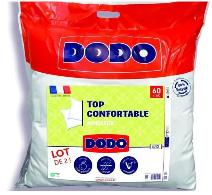 Neuf 4 Oreillers Confortable 60 x 60 cm 38 eur les 4 + Livraison incluse Lot de 4 Oreillers Confortable 60 x 60 cm, 36 € le lot de 4. - Oreiller moelleux. - Lavable à 40°c et séchable en machine. - Fabrication française. - Enveloppe : polyester. - Garnissage : polyester. - Neuf, toujours emballé.