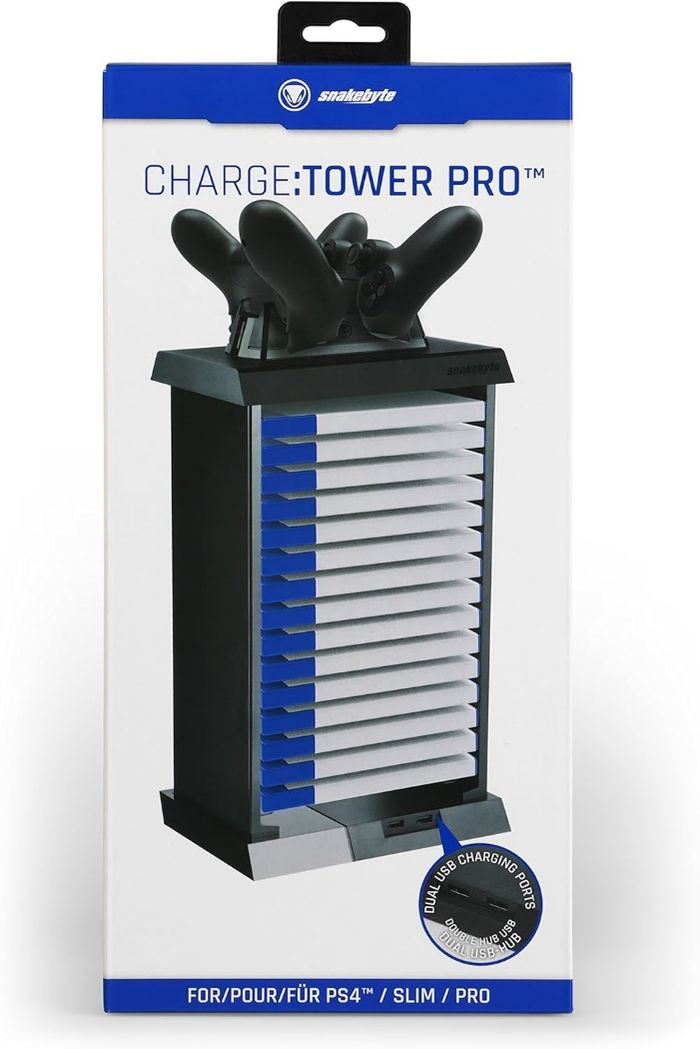 Libérez votre espace de jeu et gardez vos manettes toujours prêtes avec la Snakebyte CHARGE:TOWER PRO™ ! Cette station multi-fonctionnelle tout-en-un, compatible avec toutes les consoles PS4 (Original, Slim, Pro), est l'accessoire indispensable pour tout gamer soucieux de l'ordre et de l'efficacité.