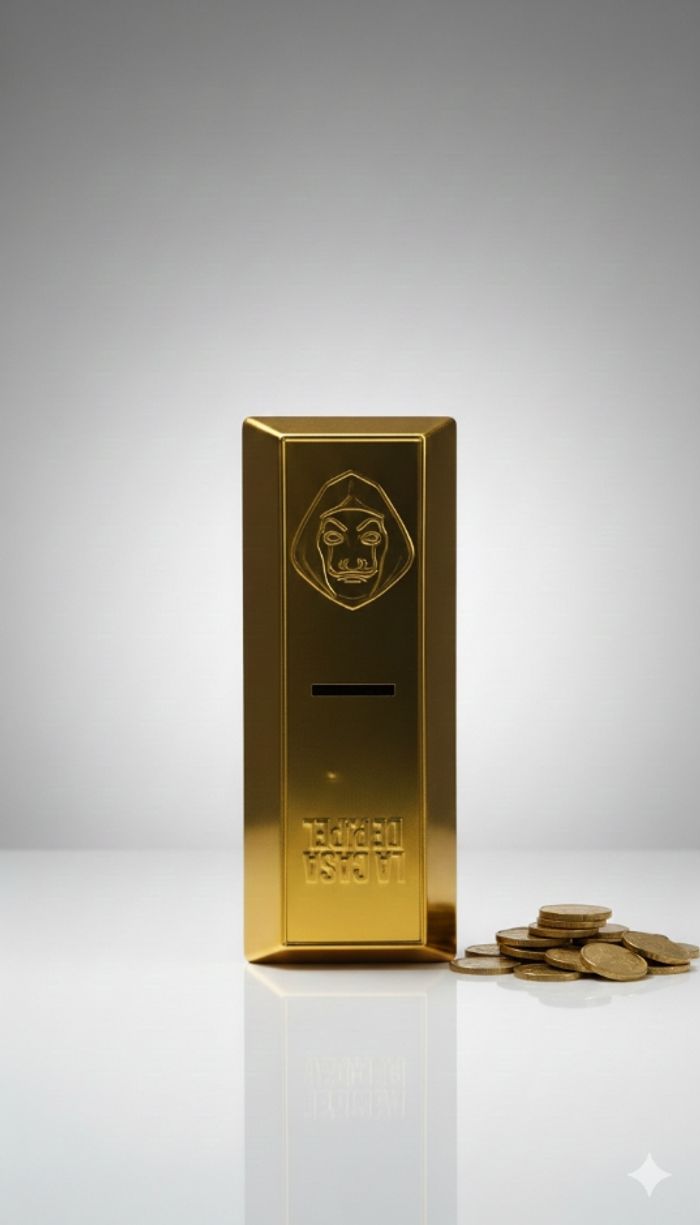 Fan inconditionnel de La Casa de Papel ? Mettez la main sur cette magnifique tirelire en forme de lingot d'or, directement inspirée de l'univers de la série culte.