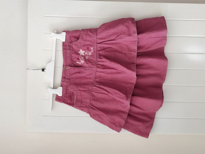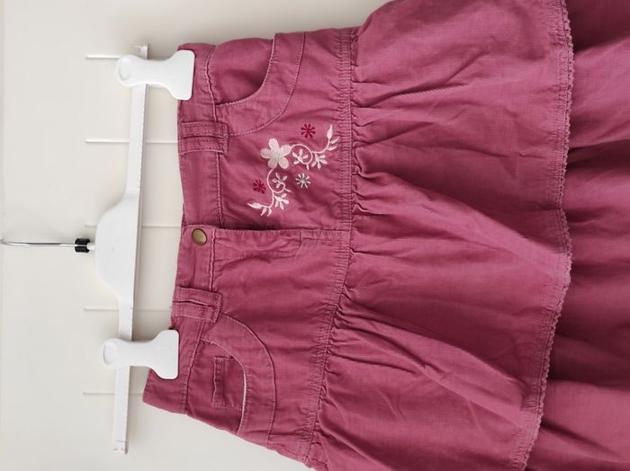 "Jolie jupe courte à volant pour fille – taille 9 ans 🌸 Motif floral 🎀 Coloris : rose🧵 Matière : velours, doux et agréable à porter ⚠️ À signaler : deux petites taches à l’arrière, au niveau du volant du milieu (voir photos). 👉 Malgré cela, la jupe reste en bon état général et tout à fait portable. Idéale pour une tenue d’automne ou d’hiver 🌿"