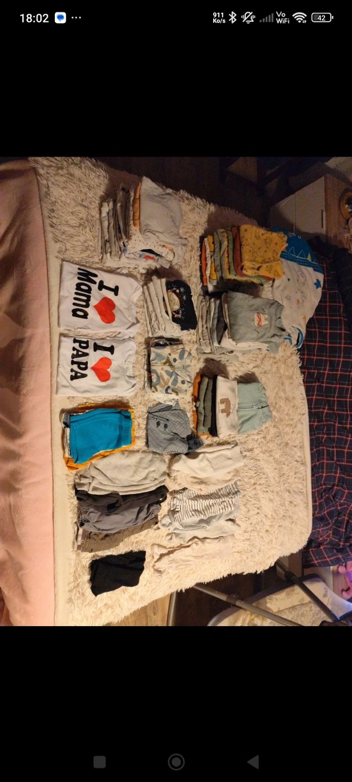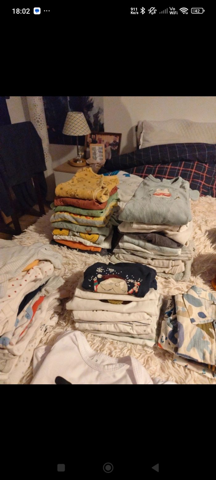 Lot vêtements bébés garçons 3 mois 75 pièces environs Certain neuf Bodies Pyjamas Pull Short Pantalon Pantalon fermé au pied Chemise Tee-shirt Sous pull et une salopette avec gigoteuse Beaucoup de pièces environs 75 pièces Certains vêtements peuvent présenter des tâches (bodies et 1 pull ) je les laisse plutôt que de mettre a la poubelle