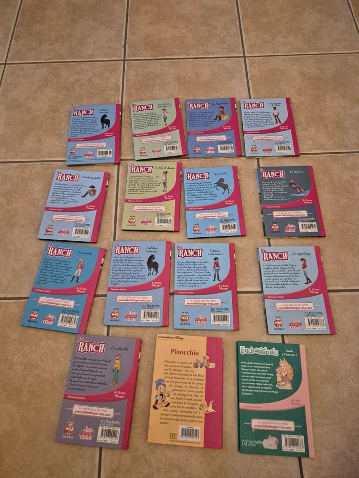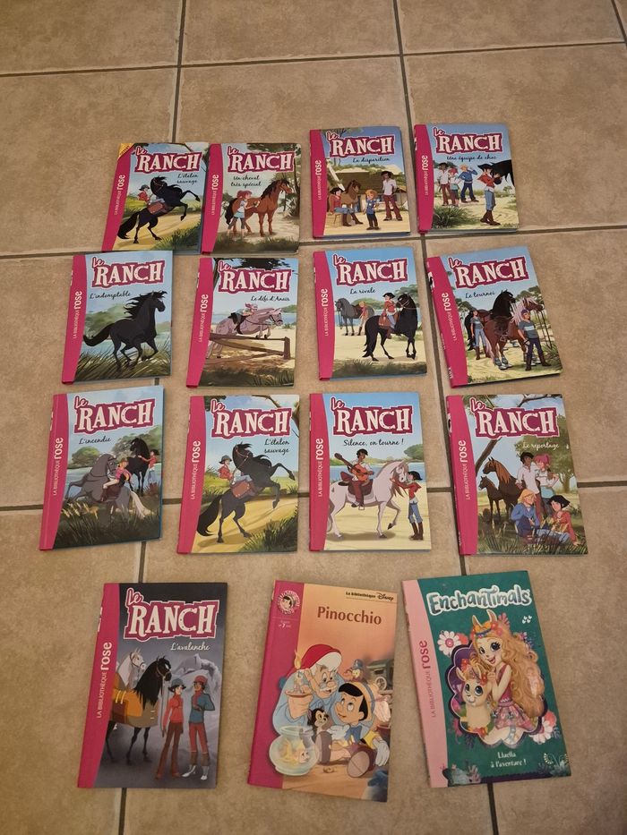 15 livres en très bon état Bibliothèque rose 13 livres le ranch 1 enchantimals 1 ponocchio