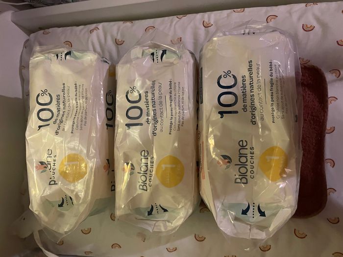 Lot de 3 paquets de 27 couches chacun, soit 81 couches Biolane (Taille 1 2-5kg) jamais ouverts. À vendre car la taille ne va plus à ma fille.