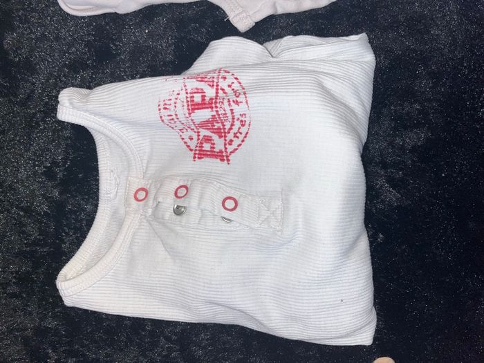 En bonne état 7 body il y a 3 blanc simple ( sur un des body une tache niveau du coup ) 1 winni 1 avec une écriture qui s’efface un peut 2 marron