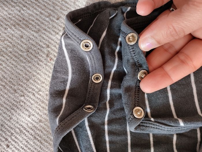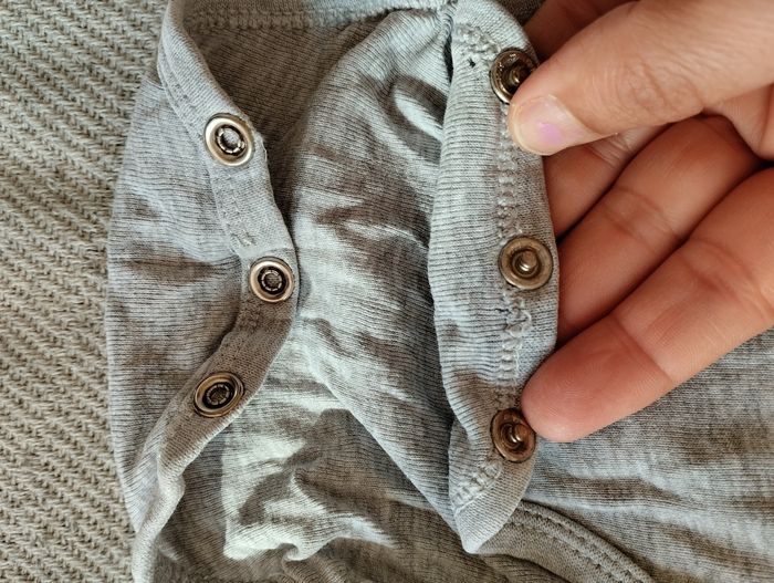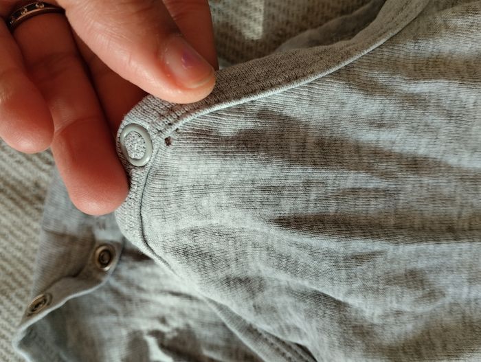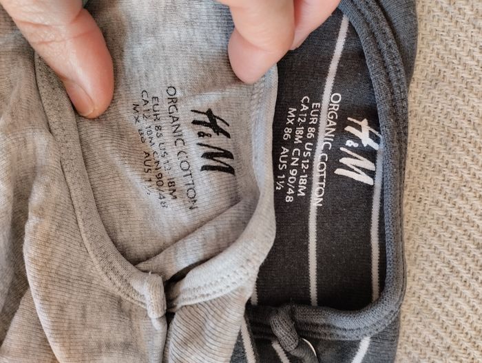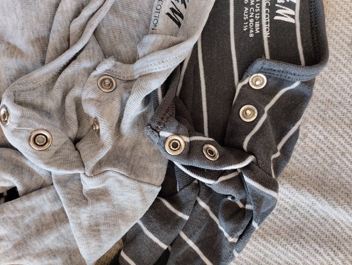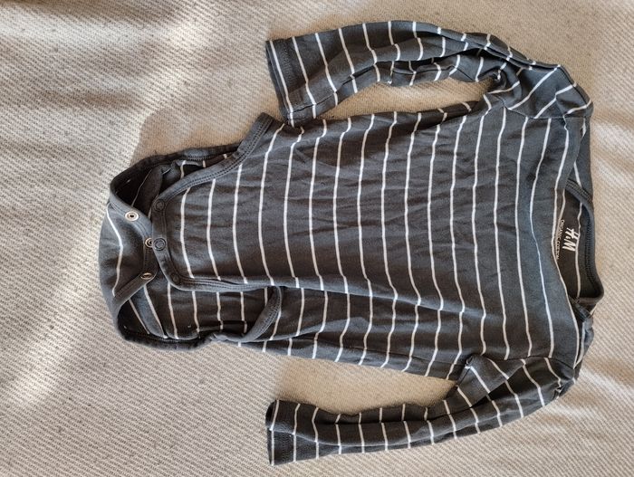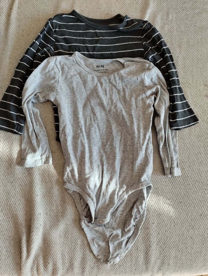 Lot deux bodies, boutons à l' épaule. H&M. Taille 12-18 mois, 86cm. Bon état car petit trou présent sur un de body, voir dernière photo.