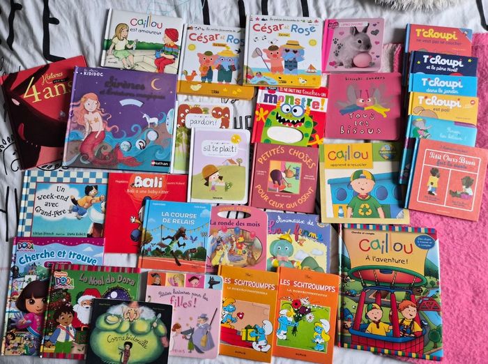 Lot de livres pour enfants Livre caillou Livre bali Livre dora livres Tchoupi, livre babar , etcccc l'ensemble est en très bon état général, il se peut qu'un livre soit un peu plié ou plus usé qu'un autre mais rien de grave (voir photos)