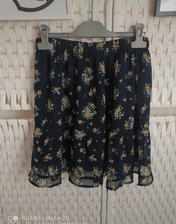 Jupe patineuse fleurie bleu & dorée BZB - Taille M (38) - photo numéro 9