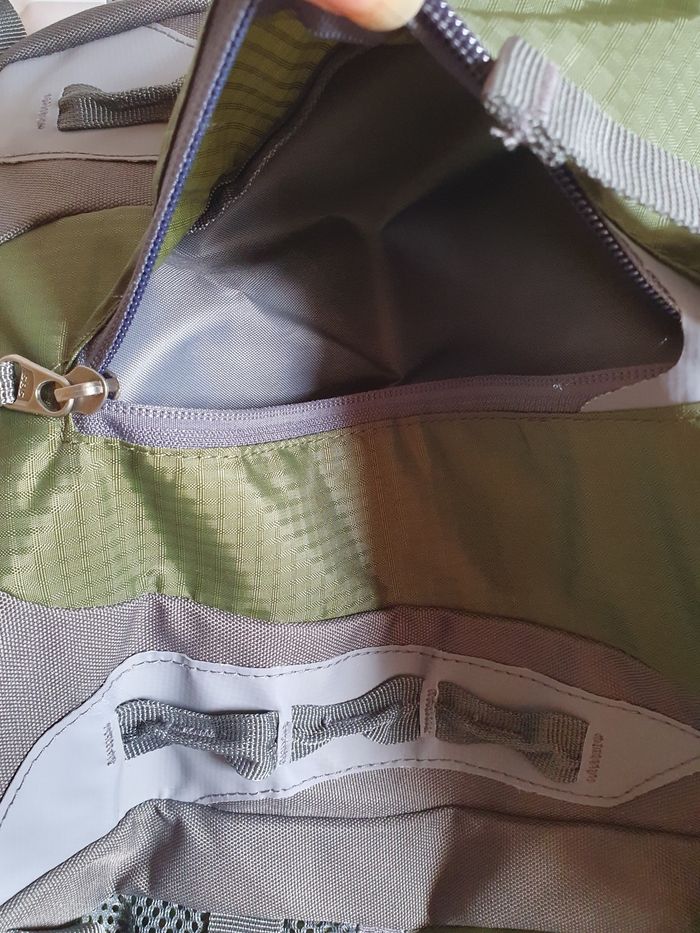 Sac a dos 65+5 litres Neuf Emballé sous blister 70x33x24 Hydrofuge effet déperlant Housse de pluie non fournie Attache pour water bag Dos et sangles rembourrés Nombreux rangements, poches. Poche pour rangement des chaussures indépendante de la poche principale. Sangles hanches et attache poitrine. Système réfléchissant