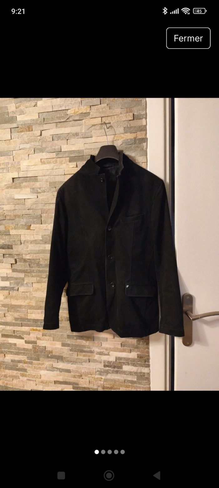 Veste noire homme taille indiqué sur étiquette 48 mais prévoir taille 44 En très bon état très belle pièce entièrement doublée de très bon qualité