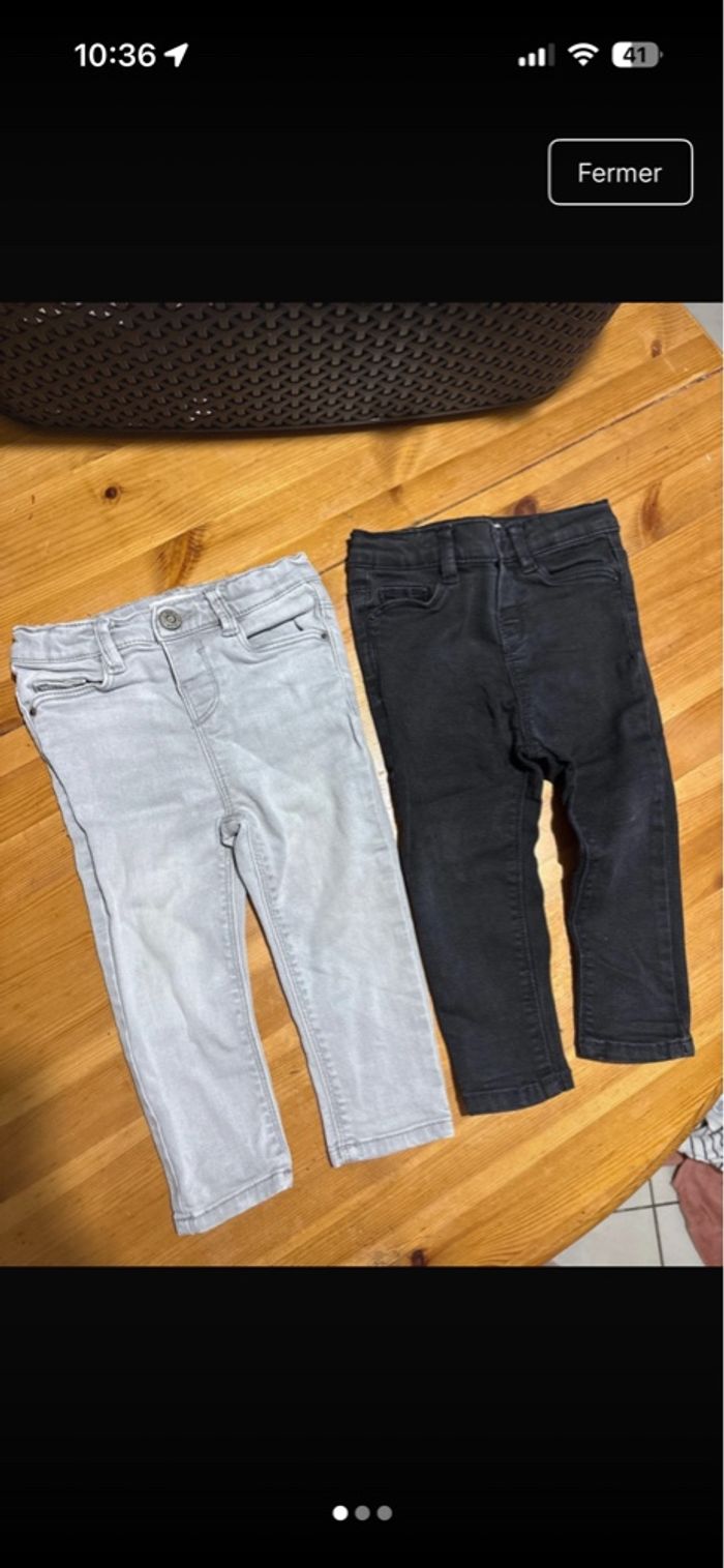 Lot 2 jeans slim stetch noir et gris Très bon état Taille 12 - 18 mois