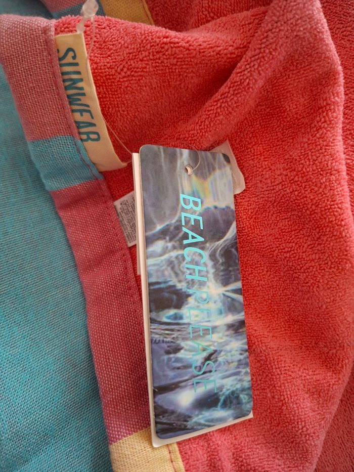 Je vends cette grande serviette de plage en coton multicolore de 100 x 160 cm. - Type de produit : Serviette de plage - Dimensions : 100 x 160 cm - Matière : 100% coton - Couleur : Multicolore avec rayures turquoise État neuf N'hésitez pas à me contacter pour plus d'informations. #jessdestock_autre