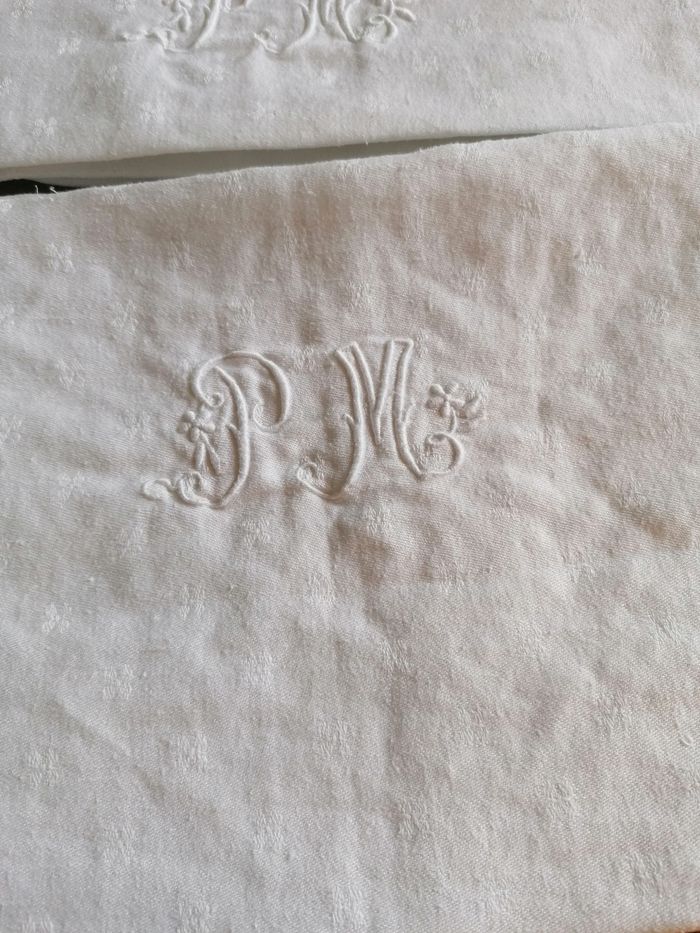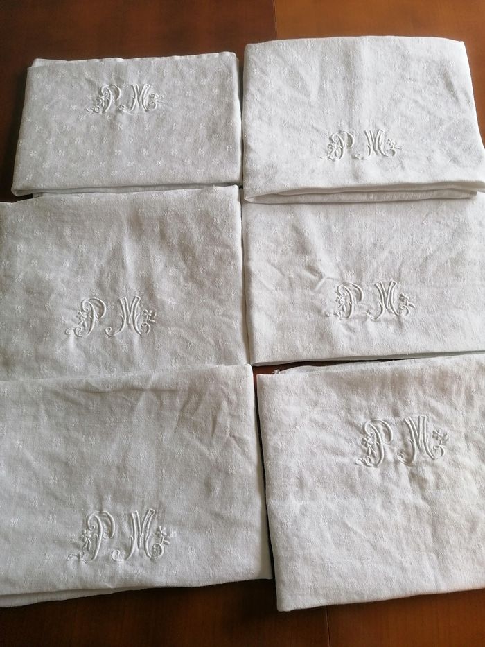 6 torchons vintage coton monogramme PM - photo numéro 1