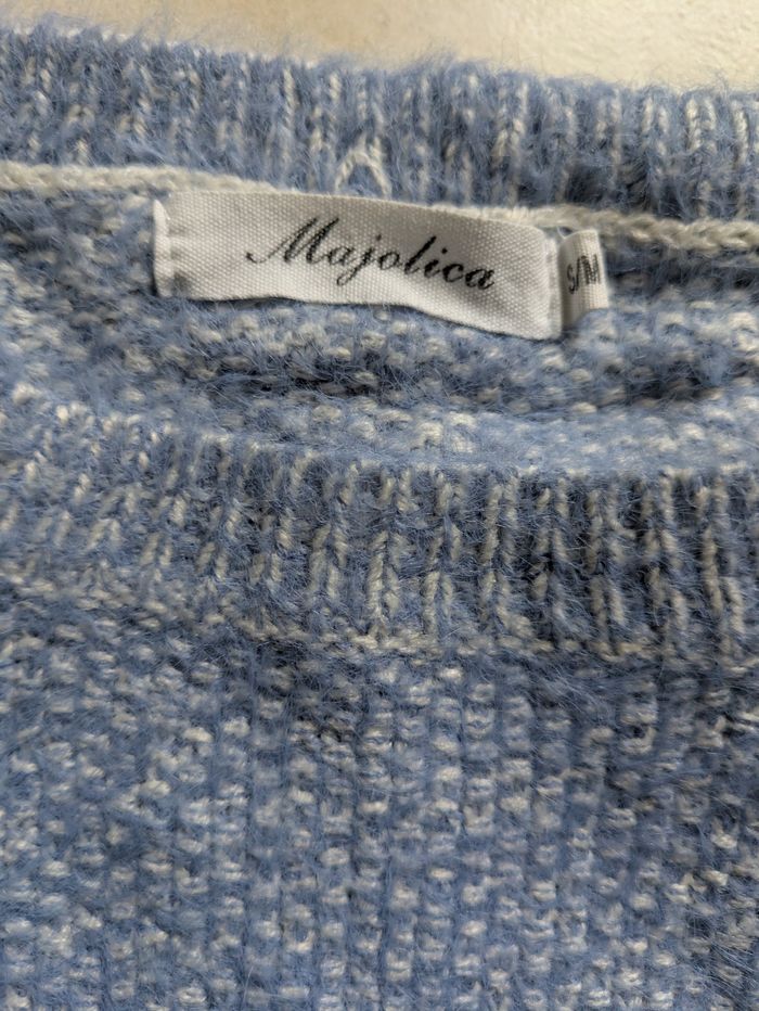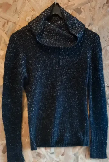 Pull bleu avec bande dorée Marque Majolica Tailles s/m mais taille petit équivalent 34/36