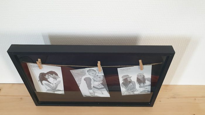 Cadre photo triptyque noir à accrocher ou à poser Dimensions 28x45 cm Quelques traces d usure minimes, reste en bon état général