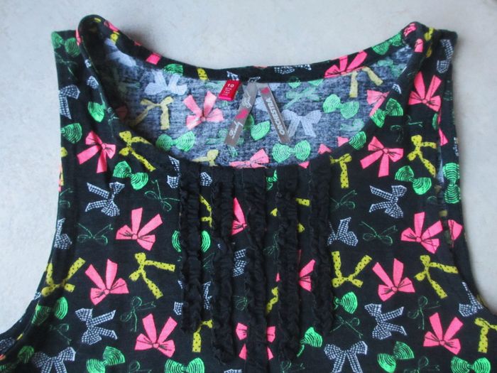 Tunique sans manches fille Orchestra - 10 ans Noire avec motifs petits flots multicolores. Très bon état.