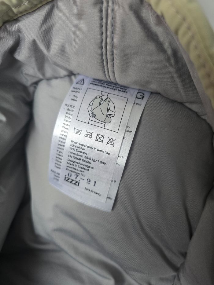 Izzzi vous propose son porte-bébé Izzzi innovant pour toujours garder votre petit près de vous. Il adopte une position naturelle lorsqu’il est installé dans ce porte-bébé ventral, et sent l’odeur corporelle Il entend sa respiration ainsi que ses battements de cœur et il est apaisé. Il est contre vous mais n’est pas oppressé. Il n’est pas gêné pour respirer, puisque son menton est relevé, son nez et sa bouche sont dégagés. Le porte-bébé Izzzi est pratique quand on veut cocooner bébé tout en ayant la possibilité de réaliser ses tâches et loisirs quotidiens.Le portage peut se faire autant à la maison qu’à l’extérieur, grâce à son petit capuchon qui protège la tête de l’enfant des rayons du soleil, du vent et de la pluie.Avec le porte-bébé Izzzi, vous installez bébé contre vous d’une seule main. Il suffit d’enfiler ses bretelles les croisant sur votre dos, sans contrainte de boutons ni de pressions. Utilisable de la naissance à 6 mois, max. 9 kilos Porte-bébé innovant, bébé est positionné allongé contre le ventre du porteur Position naturelle Matière extensible et légère Prend peu de place dans votre valise ou sac de sport Ergonomique: Izzzi s’adapte parfaitement à la morphologie du bébé Approuvé médicalement et scientifiquement Confortable pour le porteur et le bébé Possibilité d’allaiter en toute discrétion Convient pour gaucher et droitier Convient à la morphologie de maman et papa Bon maintien du dos et des épaules de l’adulte Cordon pour régler le serrage, ultra facile Poche de rangement pour sucette ou clés intégrée Très simple à enfiler et à retirer Set nouveau-né inclusPossible d'aller aux toilettes sans le détacher Approuvé T.I.C.K.S. Lavable à 30°C Conforme à la norme EN 13209-2:2016 Porte bébé neuf utilisé en test seulement 1 fois Maison 🚭non fumeur et sans animaux 🚫 jamais de sèche linge Veuillez consulter mes autres articles, je fais un grand tri!! Envoi rapide et soigné 📦