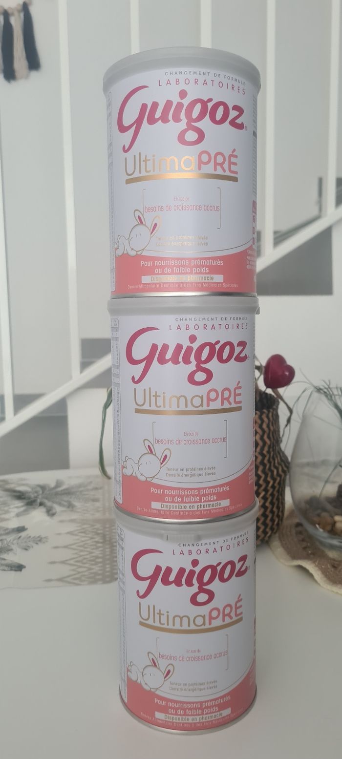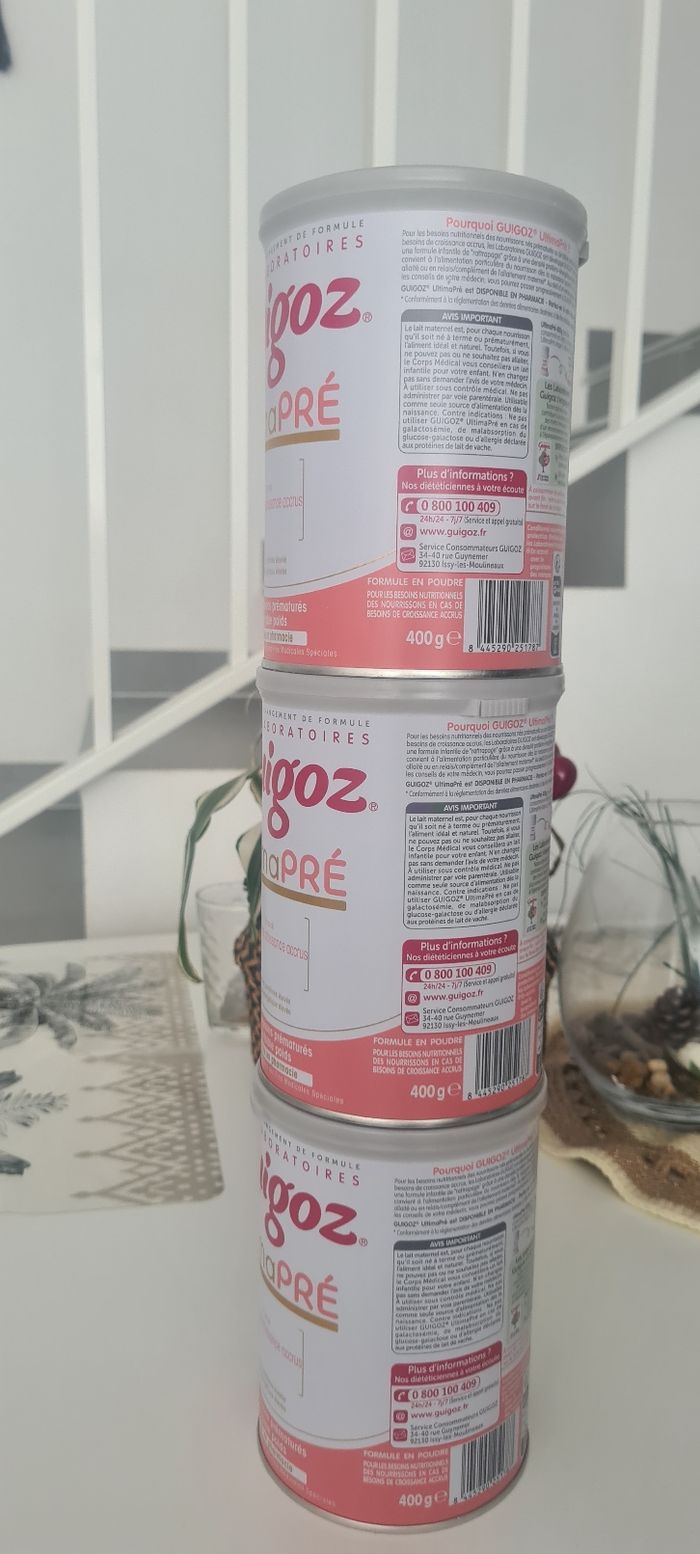 Lot de 3 boîtes neuf scellé guigoz ultimaPré boîtes de 400g Date de péremption 01/2027 45euro le lot de 3 boîtes. Pour information j'ai payer 23euro une boîte. Envoi par mondial relais uniquement.